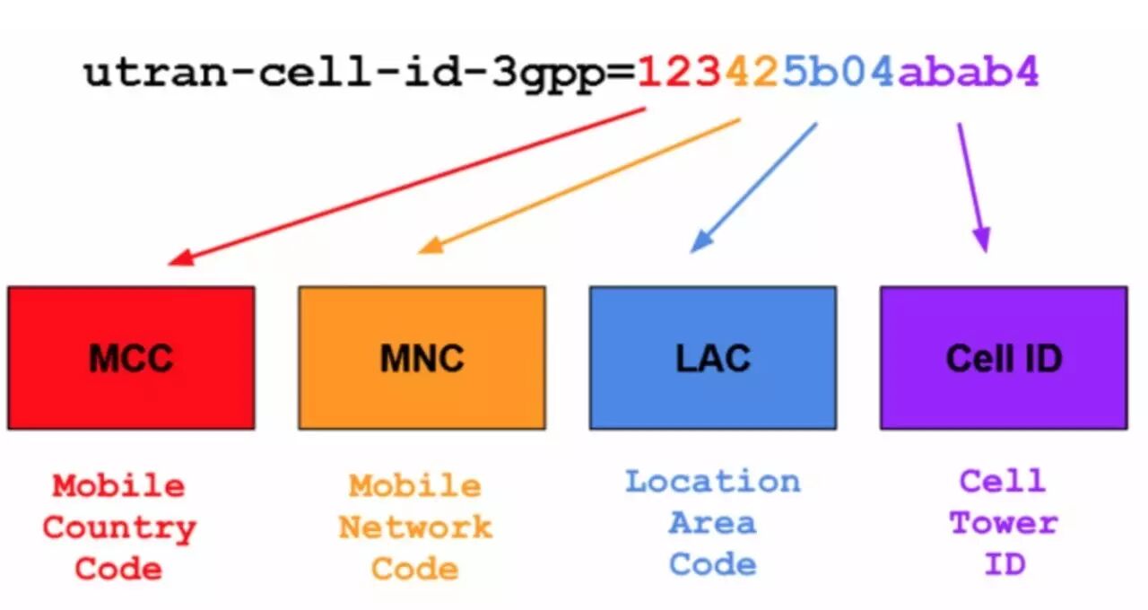 该标识符是用户手机设备天线接入移动网络的唯一标识,其中CELLID为用户手机附近移动基站的位置编号,结合经纬度等其它信息,可以对手机用户进行精确的地理位置定位。
